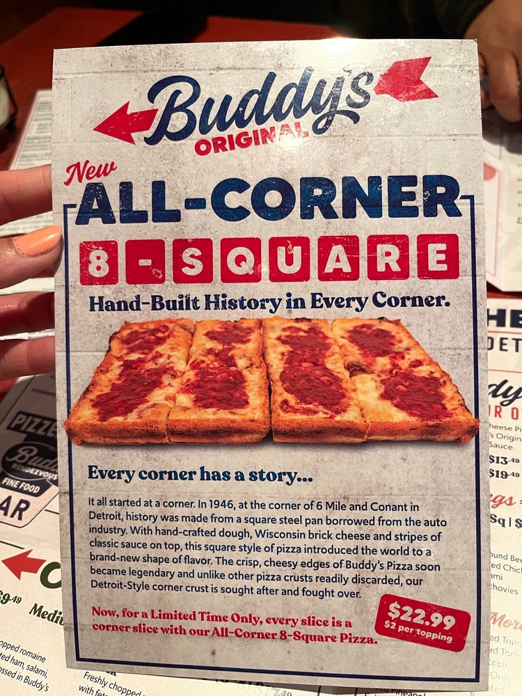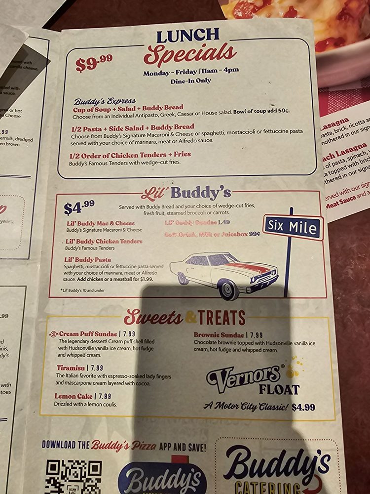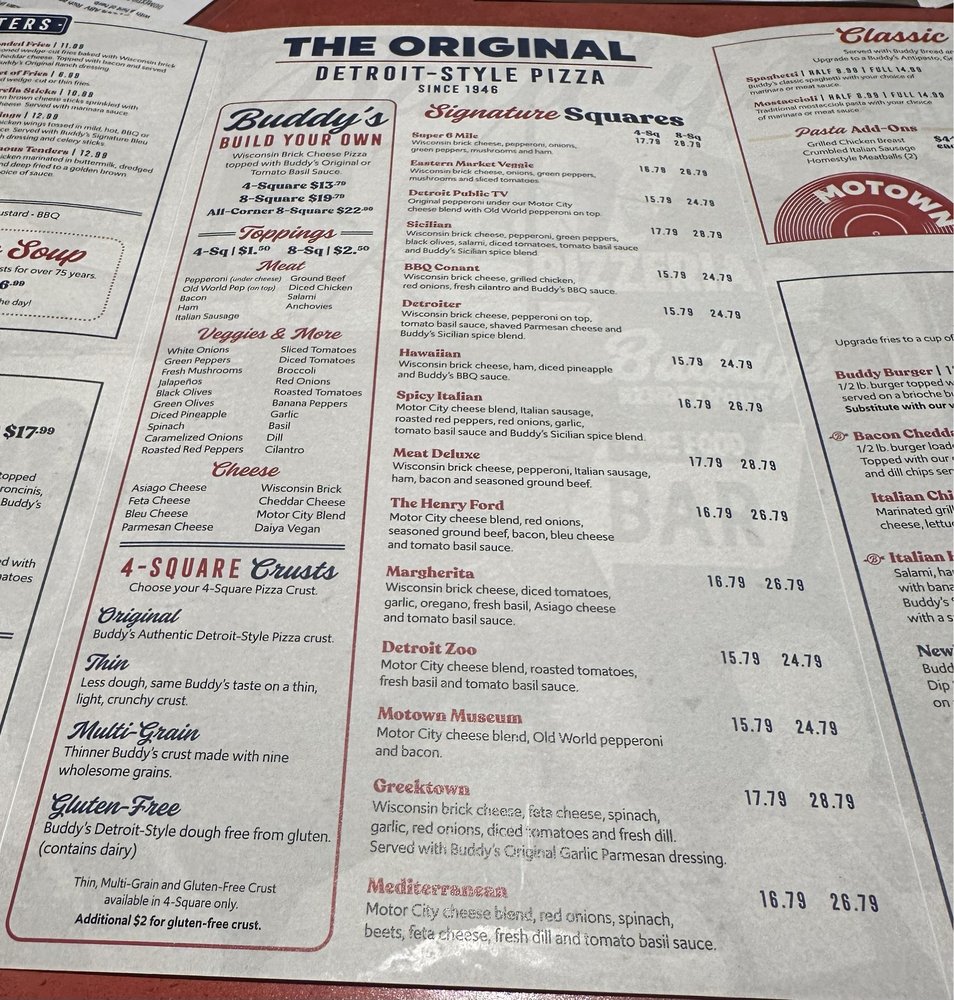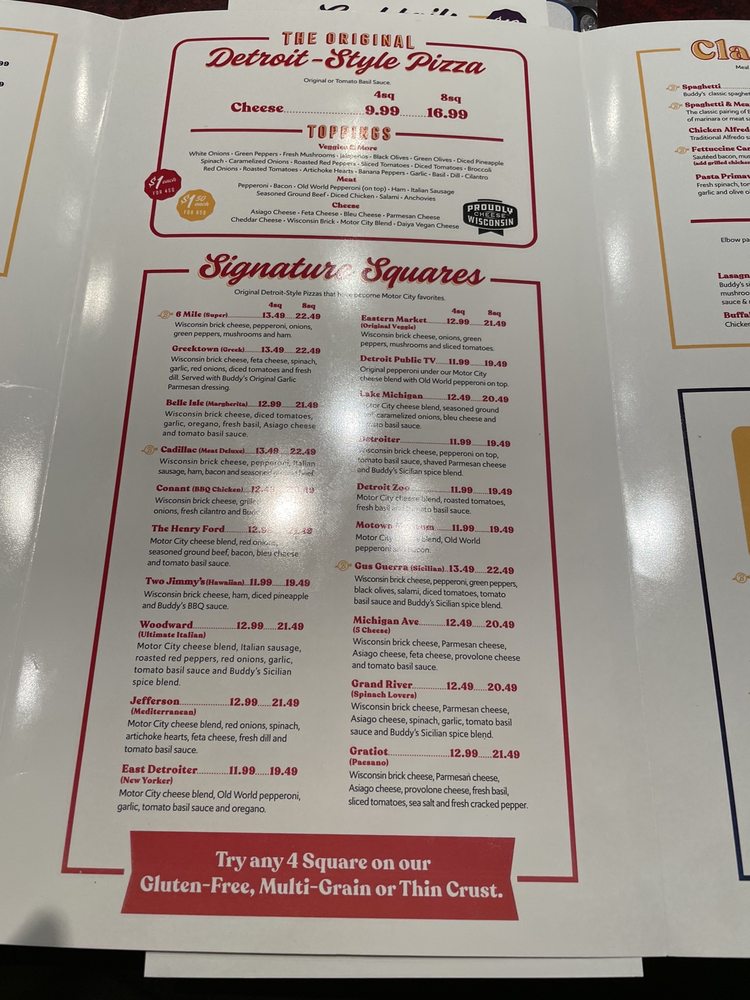 Welcome to Buddy's Pizza MI, a standout gem in Auburn Hills, where the heart of Detroit-style pizza shines. Situated at 2612 N Squirrel Rd, Buddy's offers a casual yet vibrant atmosphere that's perfect for gathering with friends or family. The menu boasts a variety of delectable options, including their famed Detroit-style pizza, where the crust is crispy on the outside and soft on the inside, topped with premium cheeses like Wisconsin Brick and fontinella.